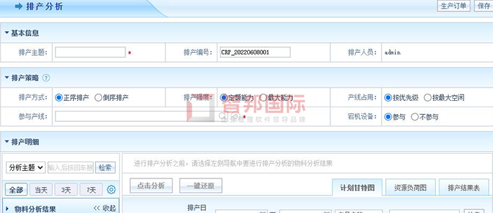 智邦国际ERP系统在生产排产环节,从排产录入、排产执行到排产查询、排产回收站,再到排产设置与权限等六个维度出发,满足企业日常管理中对生产排产的操作、跟进、自定义设置等需求,达成精益排产。此外,系统支持企业直接进行生产排产分析,也支持由物料分析结果生成排产分析,通过智能计算瞬间得出分析结果,助力企业科学排产,敏捷生产。