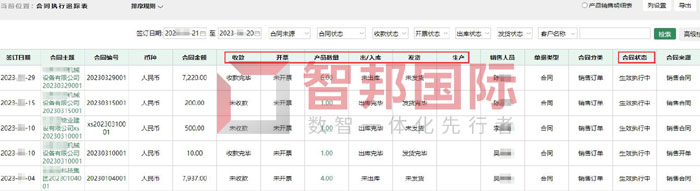 智邦国际ERP系统合同执行追踪表(局部图)