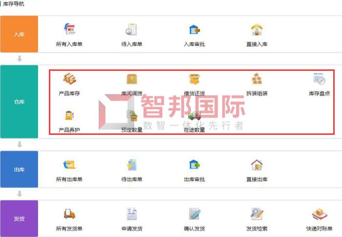 智邦国际ERP系统库存导航(局部图)