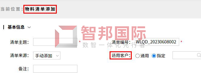功能价值:智邦国际32.09版本,新增专属级客户物料清单,添加物料清单时,可以绑定适用客户,以便为非标定制型客户打造专属级物料清单BOM;从报价到签单,从合同转生产计划、转生产派工等全程,自动根据业务流程、配置清单等复杂多变场景,抓取和适配对应物料清单,避免各个环节重复录入、繁琐低效、错漏忘丢……保障全链路按客户需求制造和交付!
