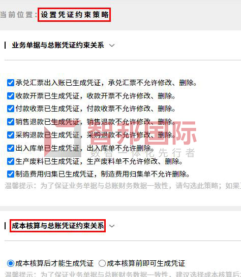 功能价值:智邦国际32.09版本,新增校验式对接生成凭证,提供“成本核算与总账凭证约束关系”全新策略,企业完全根据自己成本管理方式,按需选择成本核算后才能生成凭证、成本核算前可生成凭证,系统在业务单据对接生成凭证时,自动根据所选策略进行预校验,避免不合规流程、数据或操作导致业务、财务数据不一致、不正确等,大大提高财务效率和数据准确性。