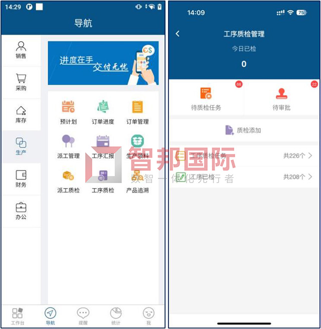 智邦国际32.09版本,PC端新增自定义皮肤颜色、各角色权限模板、一站式投标管理、供应商产品别名、协同式采购价格方案、精细化库存预警、合并式领料/补料出库、专属级客户物料清单、工序级生产图纸、工序级作业指导书、校验式对接生成凭证、对接审计软件、对接企业微信、多型号PDA设备、多型号智能考勤机等全新功能。移动端新增派工质检、工序质检……