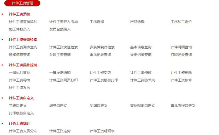 智邦国际ERP系统计件工资功能表(局部图)