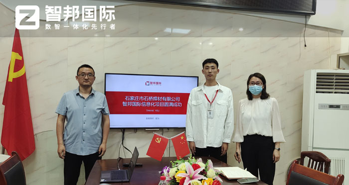 近日,石家庄市石桥焊材有限公司签约智邦国际,希望通过智邦国际ERP系统的使用,强化企业内部管控力度,消灭信息孤岛,全程监控各环节运作。