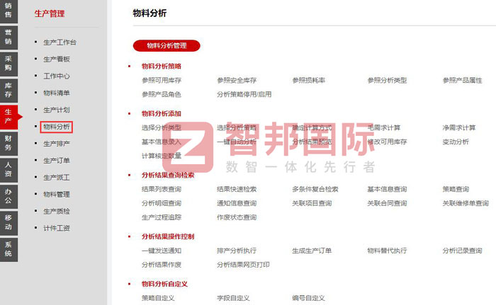 智邦国际ERP系统设有智能化物料分析功能,可自定义物料分析策略,比如,参照可用库存、安全库存、损耗率、参与运算仓库等,灵活满足各式各样的生产管理场景。在选定分析策略和生产计划后,点击分析,结果自动生成,如果现有库存不能满足生产需要,可一键提交预购单,打通生产、采购等环节信息壁垒,大幅度提升协作效率。
