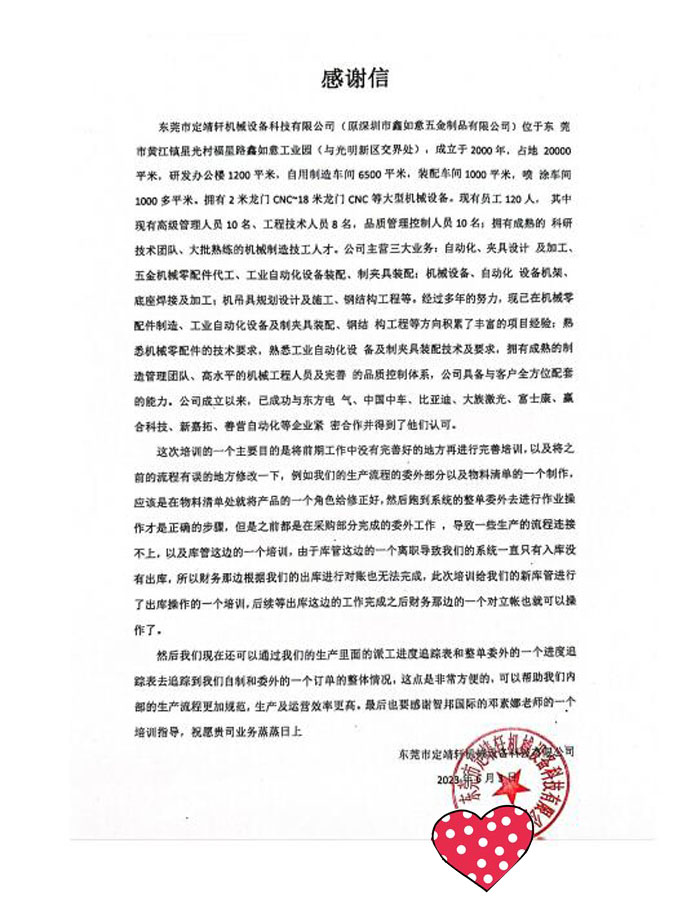 近日,东莞市定靖轩机械设备科技有限公司签约智邦国际,希望通过智邦国际ERP系统的使用,由传统粗放式管理转向精益化管理,优化业务流程,减少无效办公,降低企业成本,提高企业经济效益。