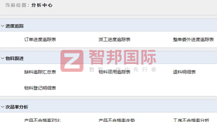 针对企业对生产进度等相关数据的分析需求,系统设有分析中心功能模块。订单进度、派工进度、次品率分析、成本分析、计件工资等数据统计表、分析表、明细表均可直接查看。分析数据可以实现实时同步、快速分析,产出科学的数据结果,供企业管理者决策分析,为企业省时省力。