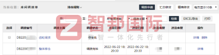 智邦一体化ERP天时系列库间调拨单(局部图)