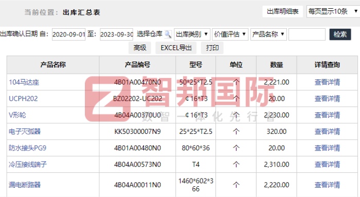 智邦一体化ERP生产版可以从微观和宏观两个维度管理企业的货品出库情况。出库汇总表可以记录产品名称、编号、数量等信息,用户可对类别和数量有所了解。在表格上方的检索处,管理人员能够定向检索指定仓库的出库情况,通过不同的库存数据信息对比,科学协调库存余量和后续的出库策略。详情界面则将每个产品的出库情况更加详尽地展示出来,用户也能够通过自定义设置表格内容,使得表格的信息维度进一步丰富,保证数据完整性和信息准确性。