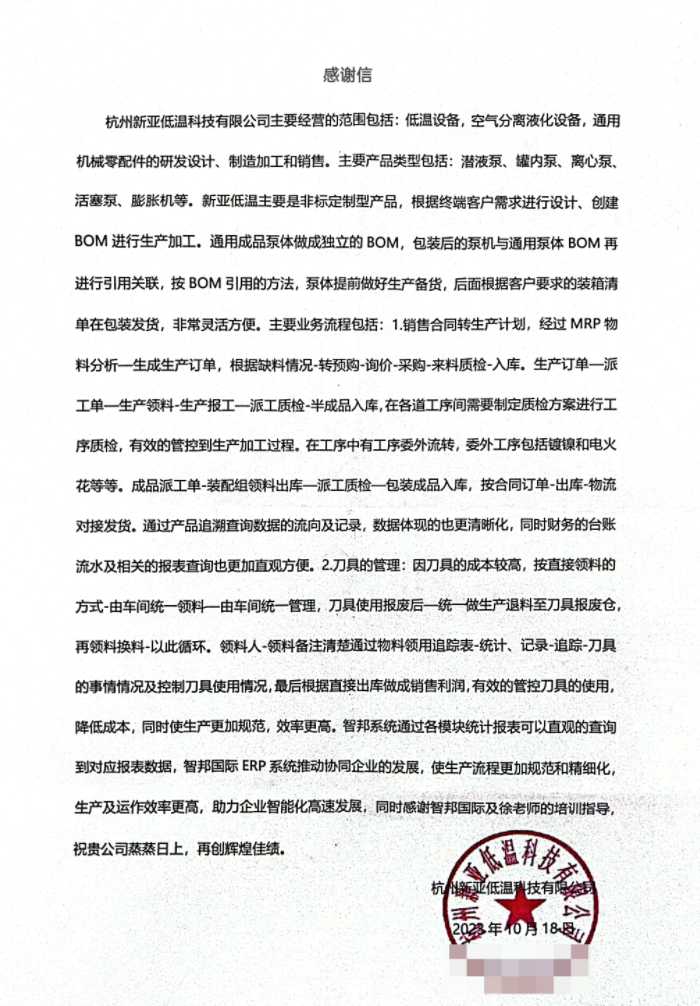 生产细节管控对企业而言,是管理质量、效率、成本的重要环节,因此企业更要通过科学的模式和途径解决问题,提高生产环节的管理质量。相信通过引进智邦一体化ERP天工系列,新亚低温科技能够将企业数据价值发挥出来,带动企业整体业务向上攀升。