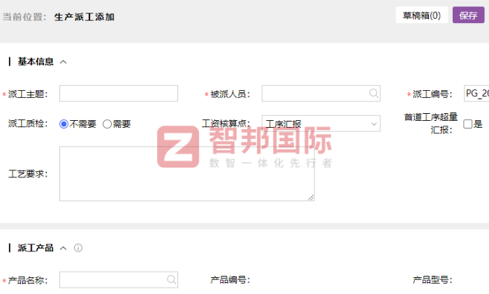 智邦一体化ERP天工系列生产派工添加(局部图)